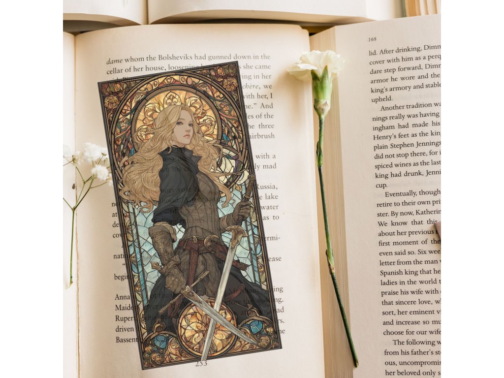 🍃 Laminált könyvjelző – Aelin karaktere| Ólomüveg hatású, átlátszó🍃