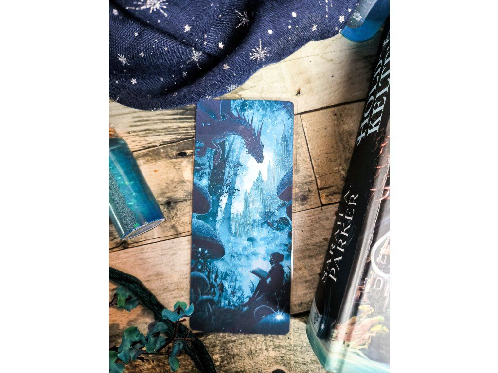 Tauche ein in eine fantastische Welt mit diesem einzigartigen, illustrierten Lesezeichen, in dem Bücher, Drachen und Magie aufeinandertreffen. Die mystische Waldszene mit einem uralten Drachen und einer lesenden Figur ist die perfekte Wahl für Fantasy- und Romantasy-Fans.