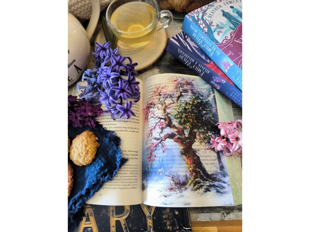 Dieses Fanart wurde für „Emily Wildes Enzyklopädie der Feen“ von Heather Fawcett gestaltet und zeigt einen weißen Frühlingsbaum inmitten eines winterlichen Waldes.