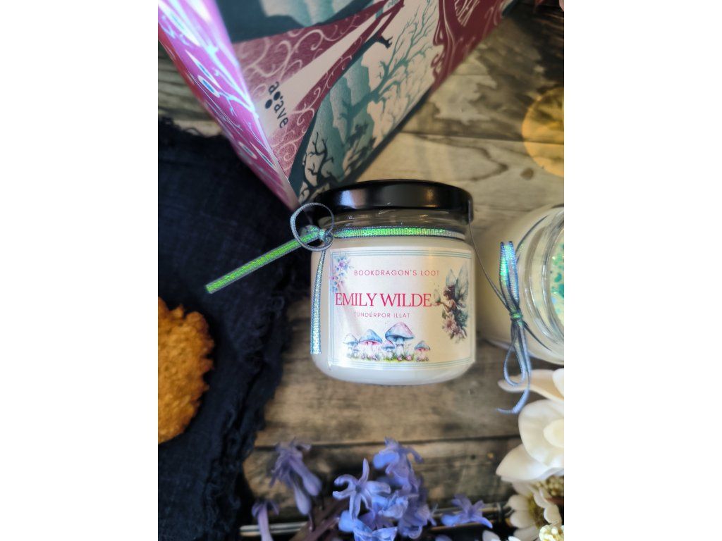 Diese Kerze wurde passend zu Heather Fawcetts Serie *Emily Wildes Enzyklopädie der Elfen* entworfen, in strahlendem Weiß mit türkisfarbenem Schimmer.