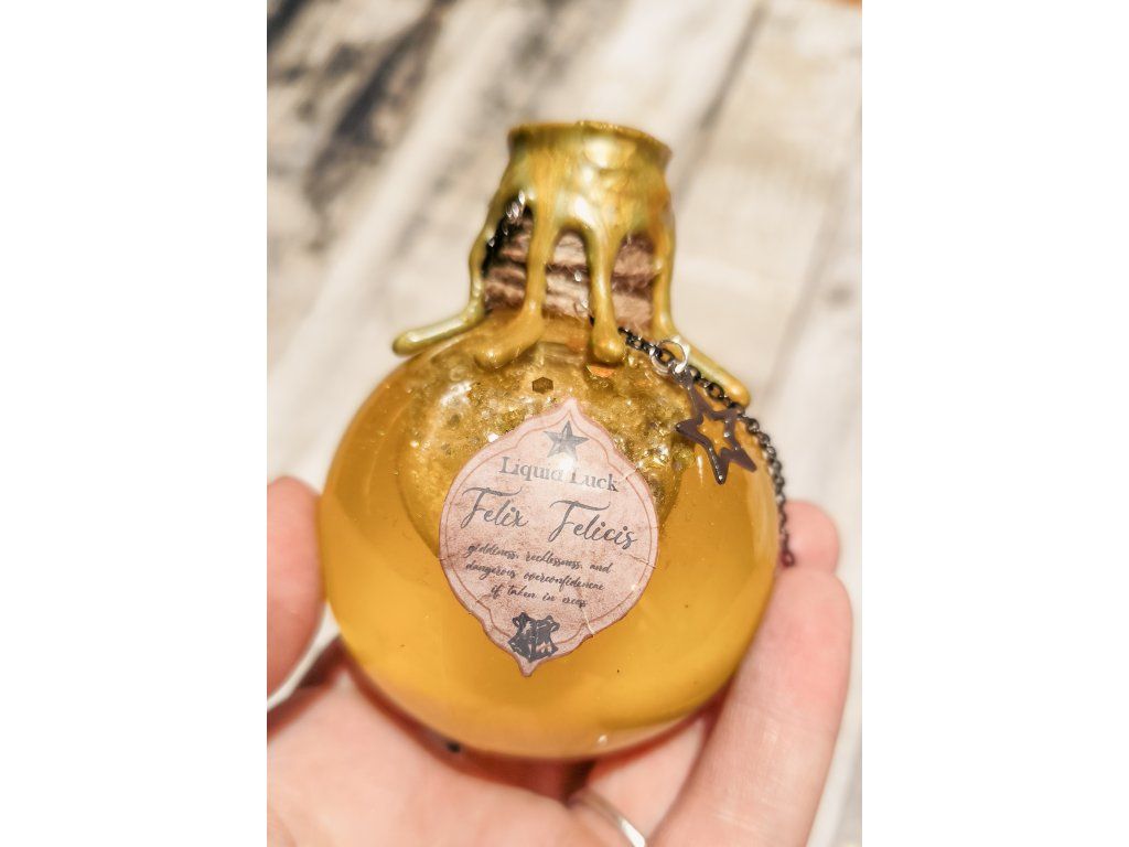 Inside the bottle, a shimmering yellow-gold liquid glows, paired with a classic, vintage-style "Felix Felicis" label that instantly evokes the atmosphere of the Hogwarts laboratories. Its HP-compatible design makes it an ideal choice for collectors and fans of the wizarding world.