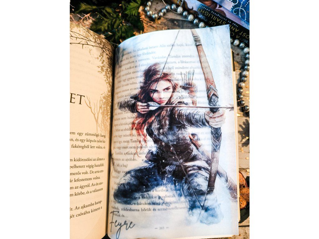 This fan art was inspired by Sarah J. Maas’s "A Court of Thorns and Roses" (ACOTAR) series and depicts Feyre during her hunt. As this iconic scene marks the very beginning of this fantastical journey, it is best placed within the pages of the first volume, "A Court of Thorns and Roses," allowing your reading experience to begin with a stunning visual immersion. ✨