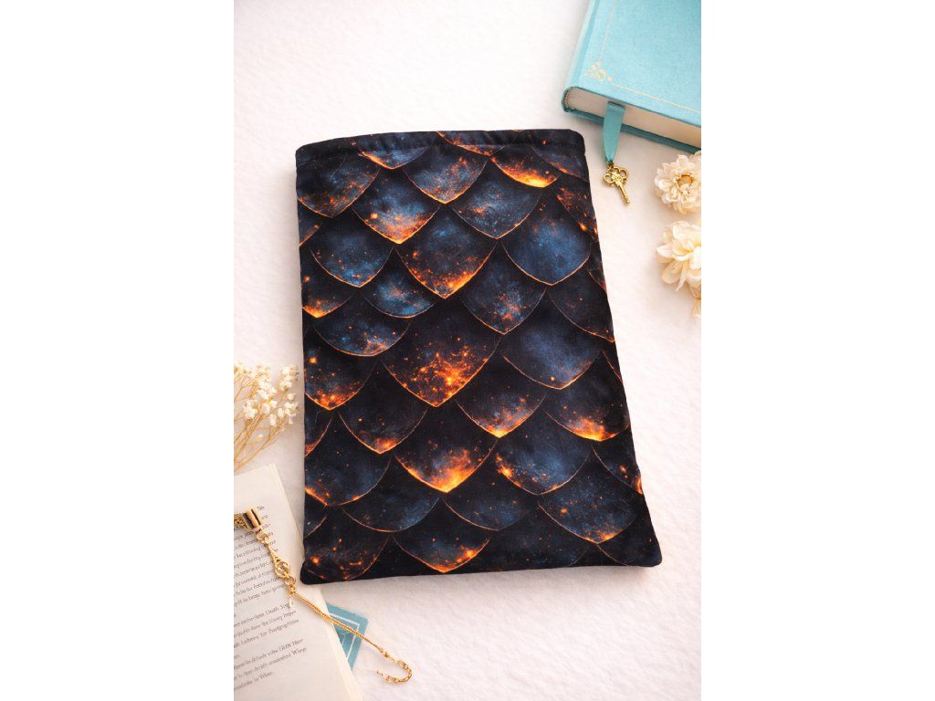 Engedd szabadjára a fantáziádat ezzel a különleges könyvtasakkal, amelyet a sárkányok misztikus ereje ihletett! A fekete, helyenként sötétkék árnyalatokkal játszó alapot aranyló pikkelyminta díszíti, így minden darab igazán különleges, elegáns és egyedi hatást kelt. 💫