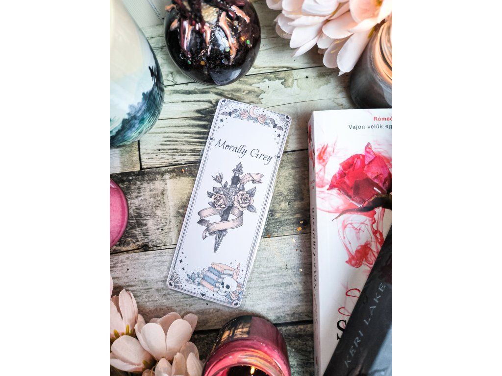 A kedvenc antihőseid tiszteletére. Ez a könyvjelző a klasszikus „tőr és rózsa” motívummal emlékeztet arra, hogy a legvonzóbb karakterek ritkán szentek.