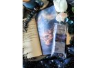 Lilás sárkány könyvvel, üvegablak haátsú, kissé áttetsző könyvjelző. Holografikus.